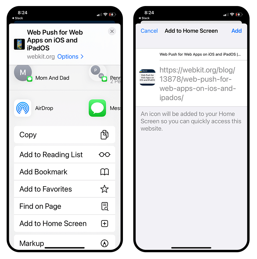 According to WebKit, this is the same W3C standards-based web push that was added in Safari 16.1 for macOS Ventura last fall. If you’ve implemented standards-based web push for your web app with industry best practices — such as using feature detection instead of browser detection — it will automatically work on iPhone and iPad.