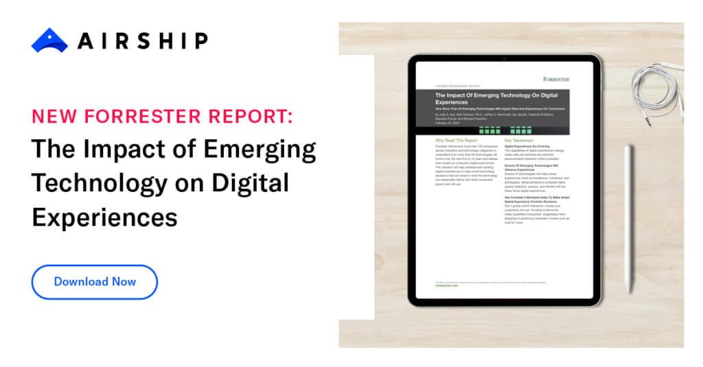 From mobile wallets to membership apps, technology is the single biggest driver of the customer experience today. That’s why, for their recent report, “The Impact Of Emerging Technology On Digital Experiences,” Forrester interviewed more than 150 companies across every industry to understand how technology will evolve the digital experience over the next five to 10 years. Our top takeaways are below, but don’t miss the full report, available for a limited time here.