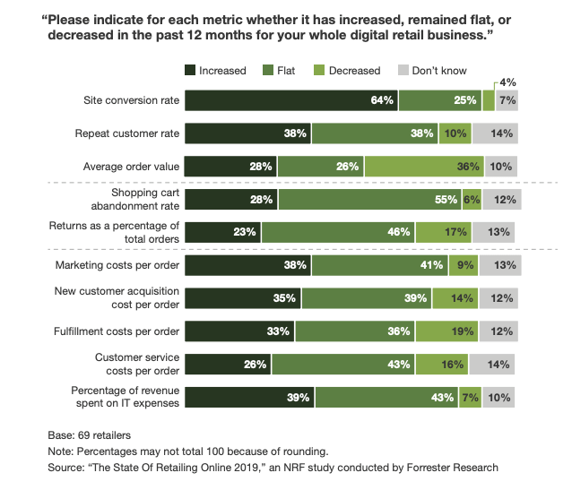 Overall, the report indicates that retail businesses are continuing to grow and benefit in both brick-and-mortar and eCommerce spaces, despite the rising cost of marketing and customer acquisition.