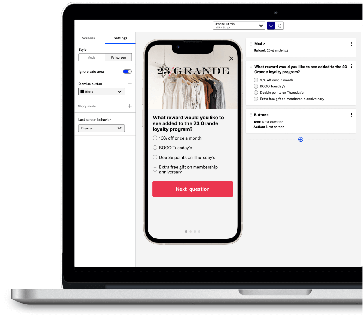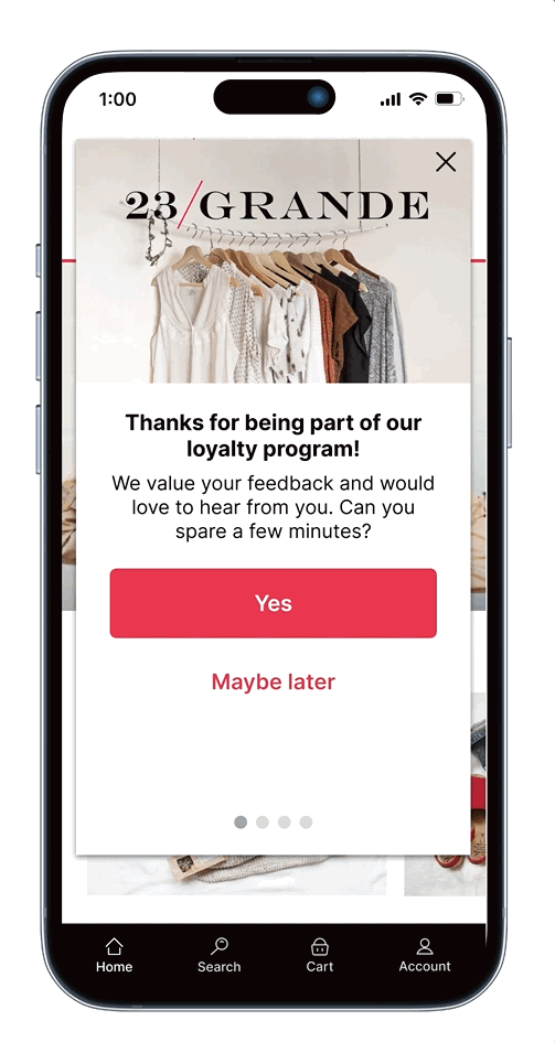 Set up your team with a native user-friendly solution designed for agility. Maintain peace of mind knowing every experience delivered is powerful, accessible and measurable — tracking customer engagement, sentiment and behavior, while accelerating zero- and first-party data strategies. Deploy new experiences in minutes — no app store updates or developer required.
