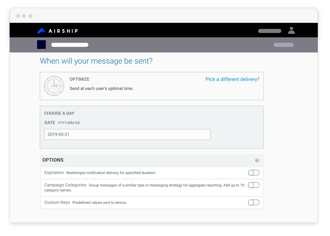 Airship’s Optimal Send Time means you have the customer-level intel you need to send messages at the time your customers are most likely to engage with them. Our sophisticated algorithms are based on an individual’s behavior, creating data-driven intelligence that helps you cut through the messaging clutter and boost engagement.