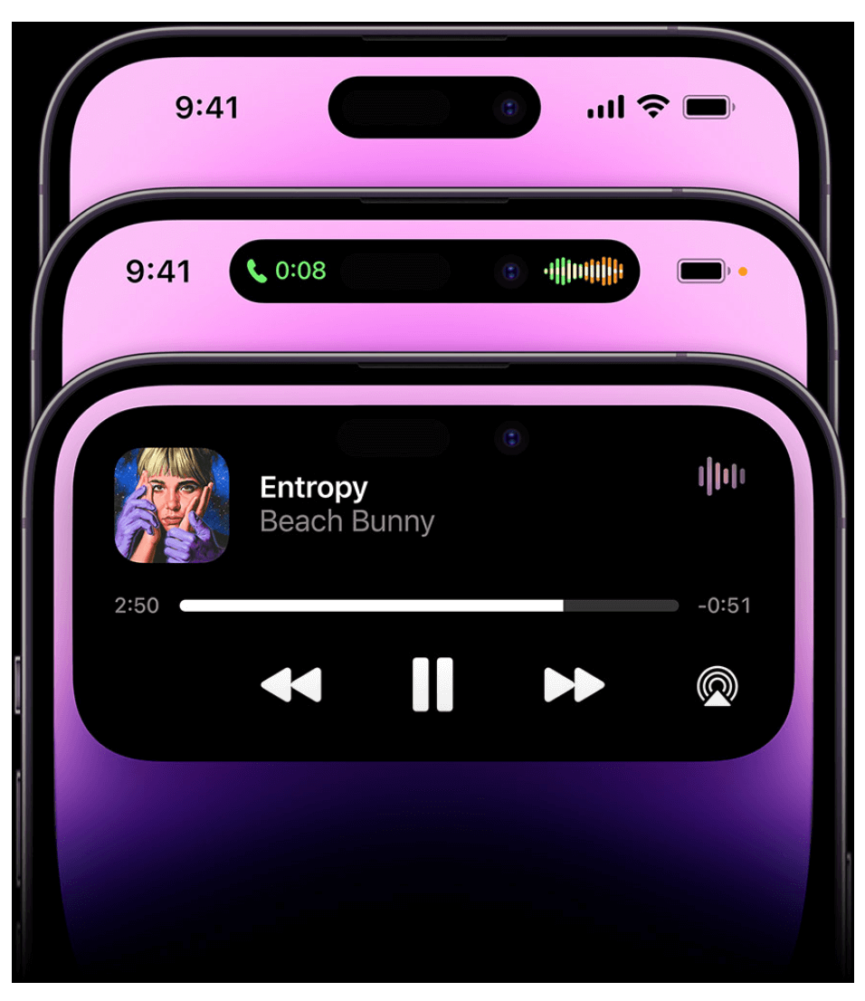 The Dynamic Island is a new pill-shaped cut-out – replacing the top-notch – that enables new ways to interact with the iPhone. It adapts and expands into different shapes in real-time to show important alerts, notifications and activities, and maintains an active state so users can control ongoing background activities with a simple tap-and-hold. Best of all, it seamlessly integrates with iOS 16’s new Live Activities, so third-party apps can provide dynamic updates such as sports scores, ride-sharing arrivals, day-of-travel updates, workout stats, developing news stories, delivery and reservation statuses, and more.
