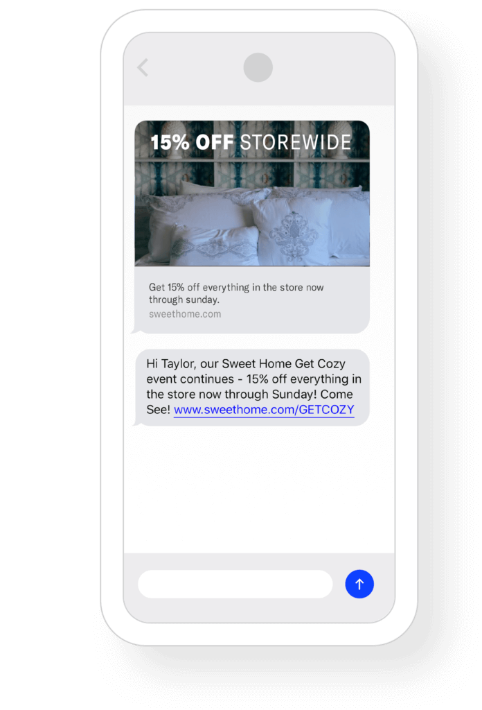 Organizations that use SMS marketing can also send MMS to their audience of opted in users. Plus, MMS messages include a fallback, ensuring that users who can’t view the original MMS message still receive a message that makes sense.