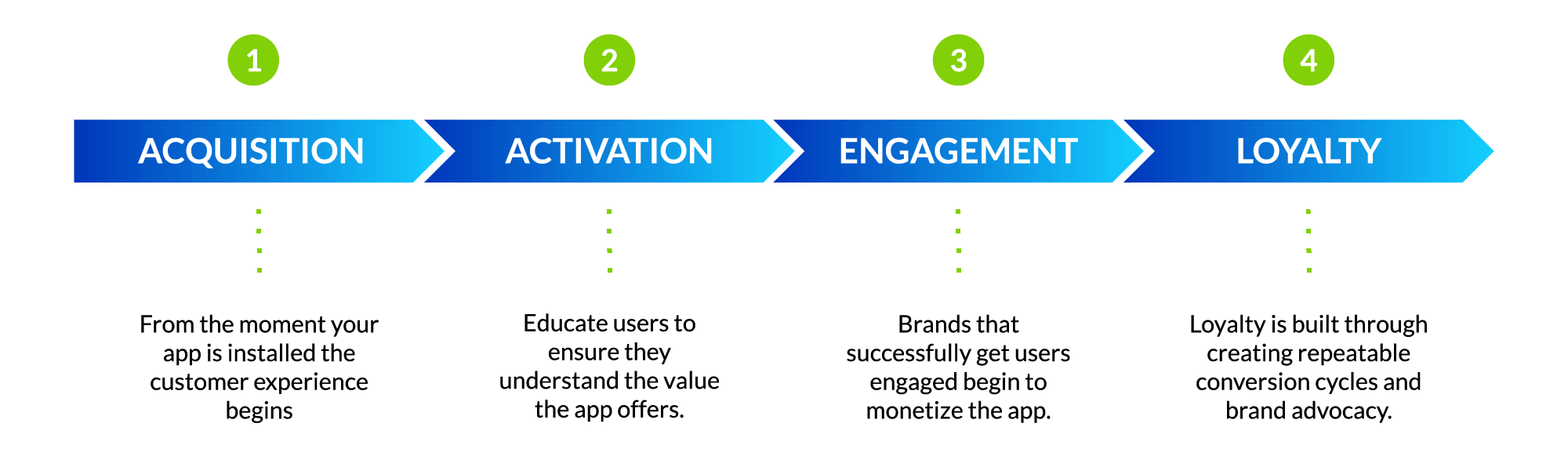 Getting users to move beyond the “Activation” phase is one of the toughest challenges that brands face today. Most brands continue to focus on the “Acquisition” phase, and they use channels, like SMS and email, to drive users to the app. Not only do they fail to use these channels to keep customers engaged on the app, but they also fail to interact with users via a seamless app experience.