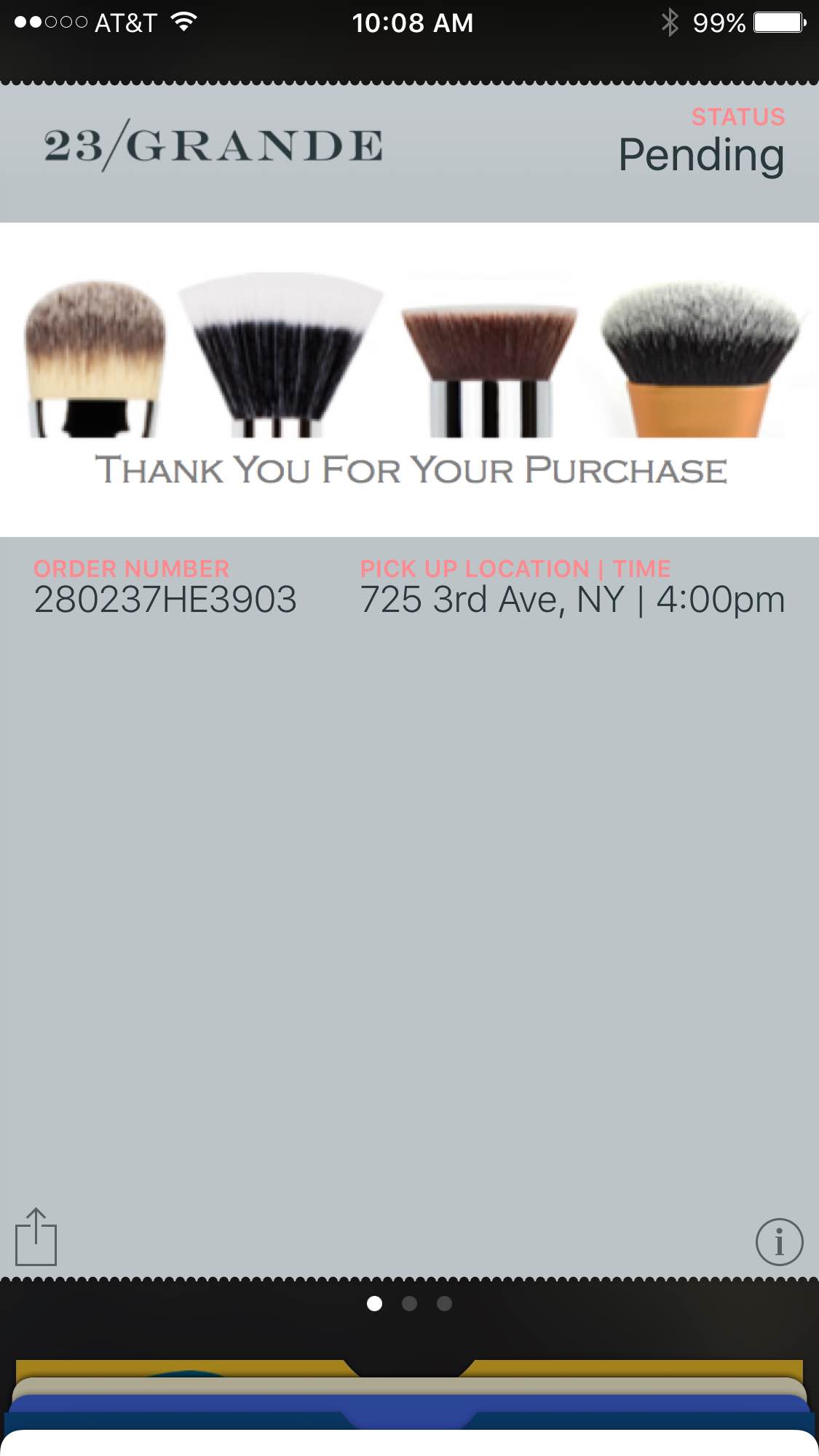 Above: Example of mobile wallet order confirmation pass