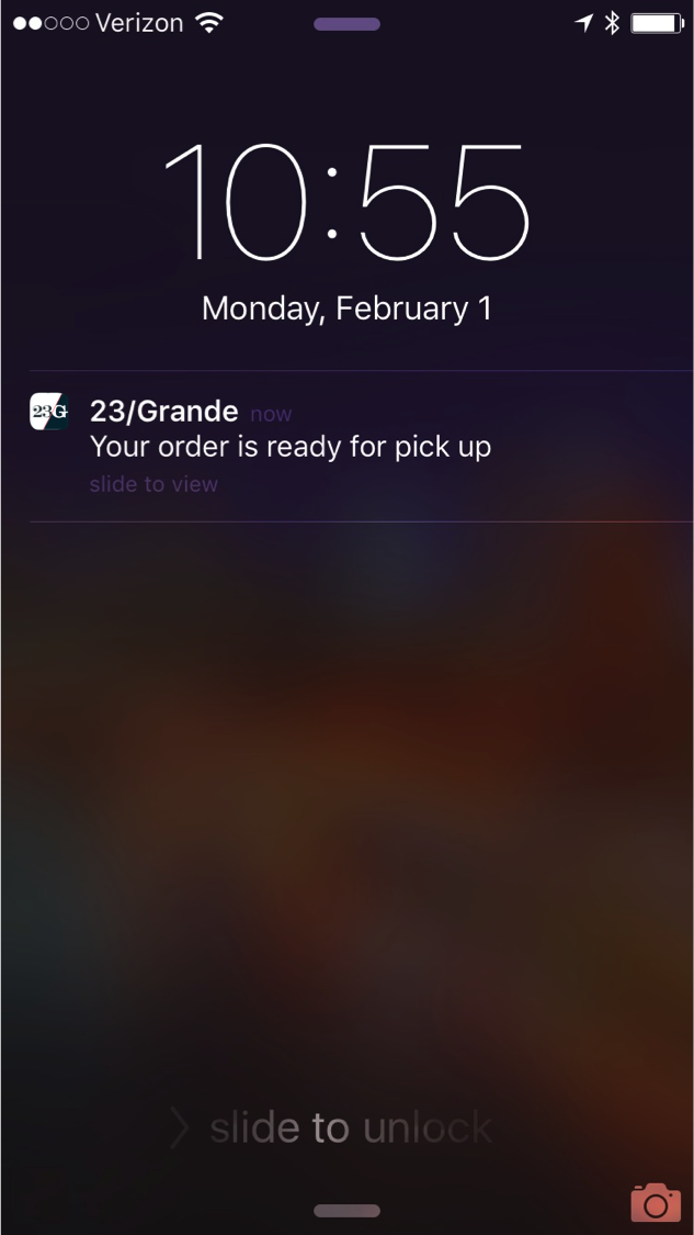 • Directly send a notification to a customer’s lock screen, alerting them their order is ready for pickup.