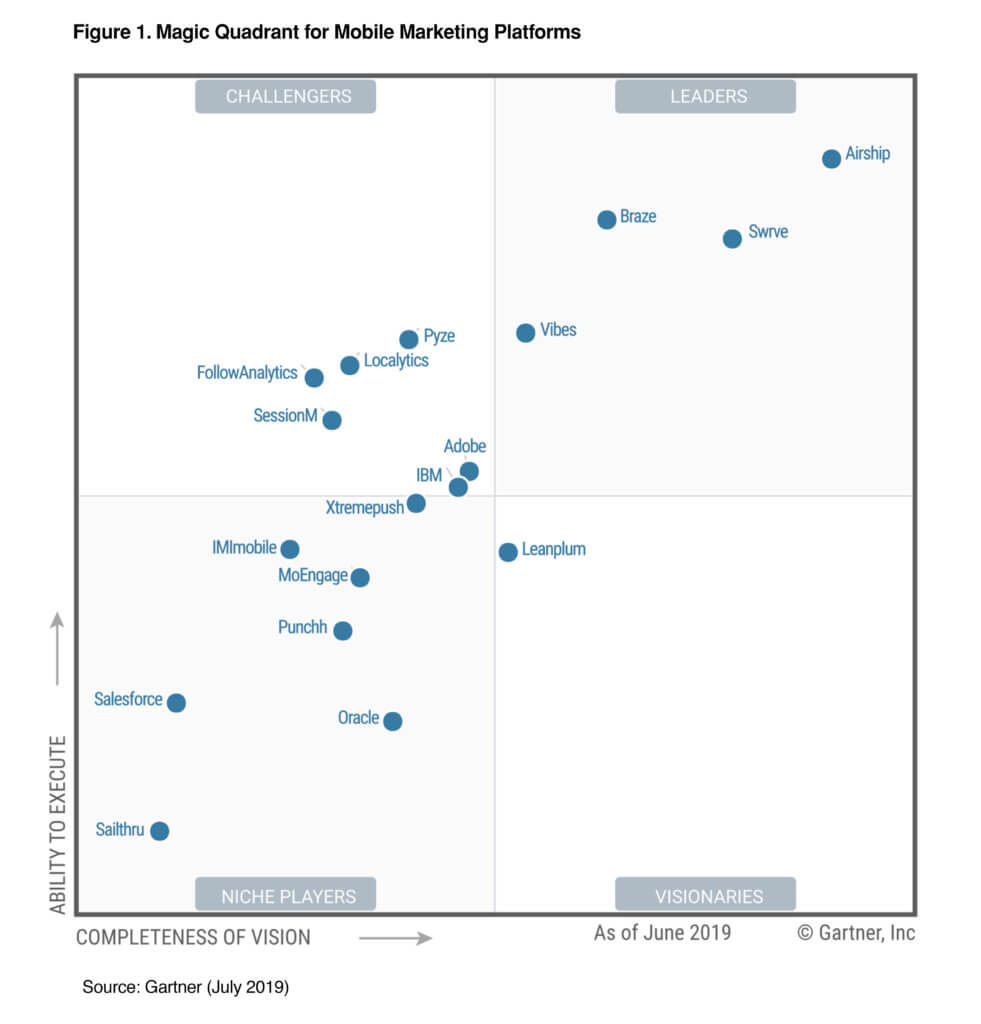 *Gartner “Magic Quadrant for Mobile Marketing Platforms” by Mike McGuire, Charles Golvin, July 15, 2019