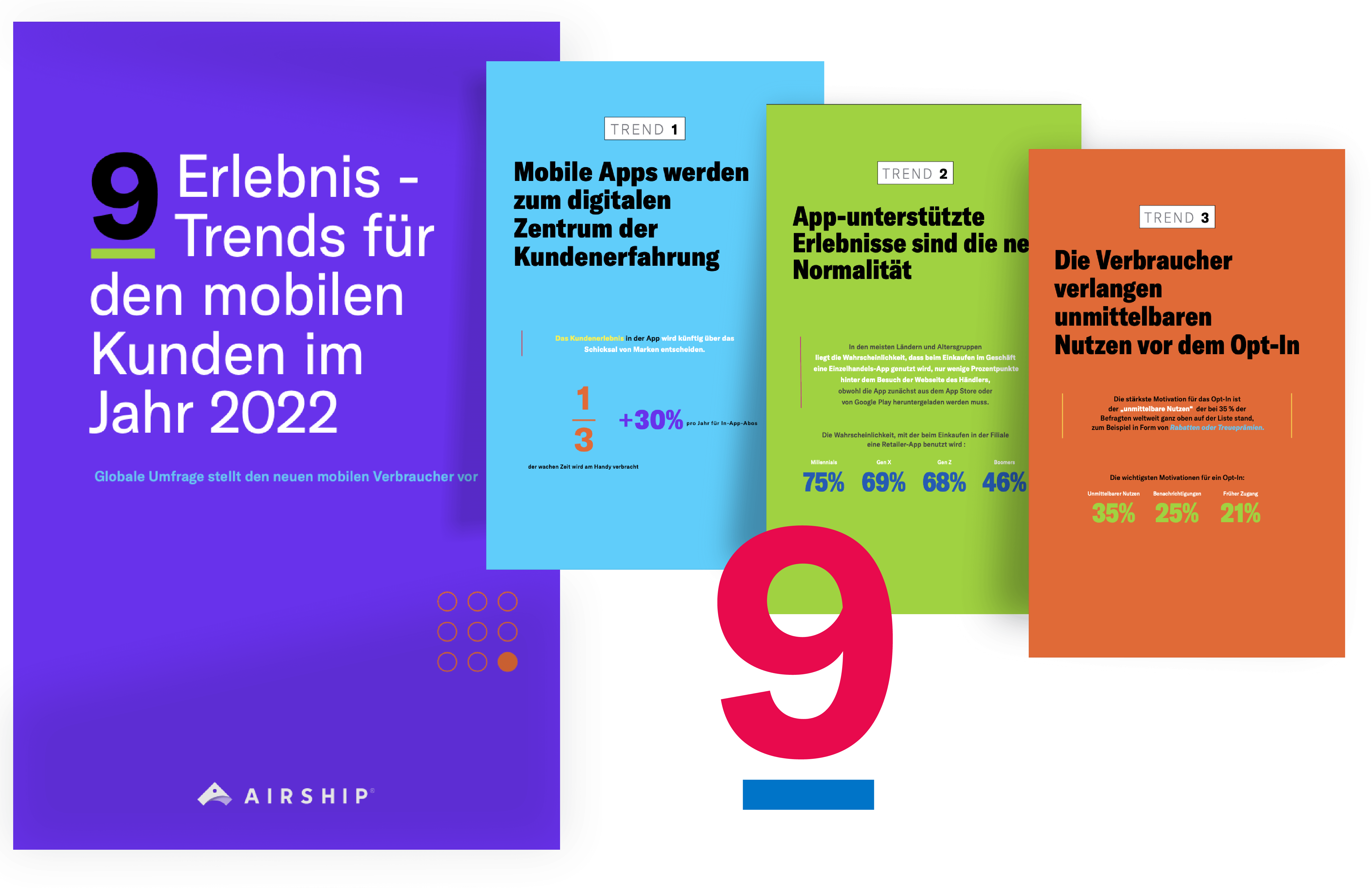 Eine anhaltende Pandemie, Sorgen um Lieferketten-Engpässe und Inflation sowie die Vorliebe für alles, was mobil ist, führen dazu, dass sich sowohl Kunden als auch Unternehmen mehr denn je auf Apps verlassen. Wie wird sich dieser generelle Trend im Jahr 2022 auswirken? Werden die Kunden weiterhin die mobile App anderen Kanälen vorziehen? Werden Marken die Kundenerlebnisse weiterentwickeln, um neuen Anforderungen gerecht zu werden? Welche langfristigen Auswirkungen wird Corona auf das Kundenverhalten und das App-Design haben? Wie können Verbraucher und Marken zu einem fairen Interessenaustausch kommen, von dem beide Seiten profitieren? Wie werden Marken auf grundlegende Veränderungen der Plattformen reagieren? Und nicht zuletzt: Was ist den Verbrauchern wirklich wichtig? Die Antworten von Airship finden Sie in „9 Erlebnis-Trends für den mobilen Kunden im Jahr 2022“.